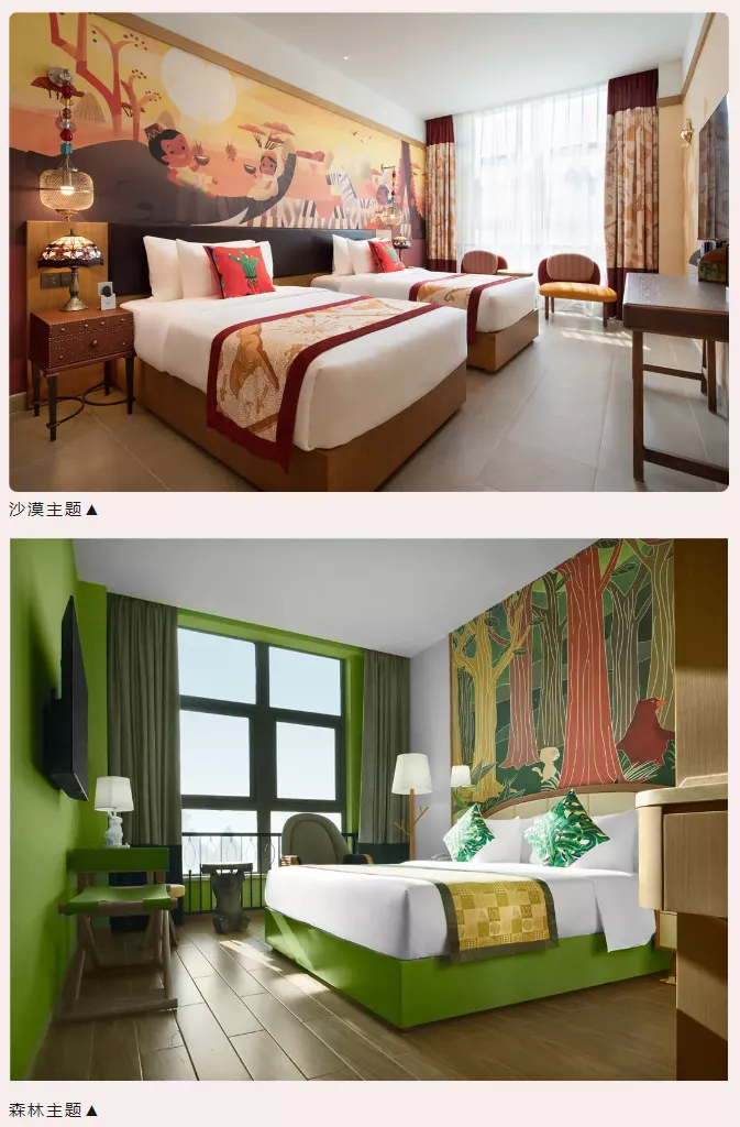 森林、海洋、沙漠、冰川四種風格迥異的房間布置 隨機安排為您提供差異化自然居住環境體驗高性價比的高星級度假生活方式.