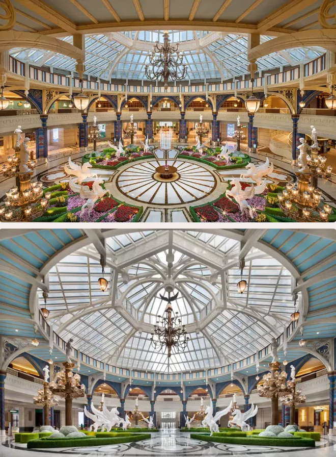 酒店的位置坐落于海島景色很贊的海岸旁,融合了歐式城堡主題和自然主題,顏值自然不在話下!氣勢磅礴的大堂,更有一種遁入澳門永利皇宮的趕腳。