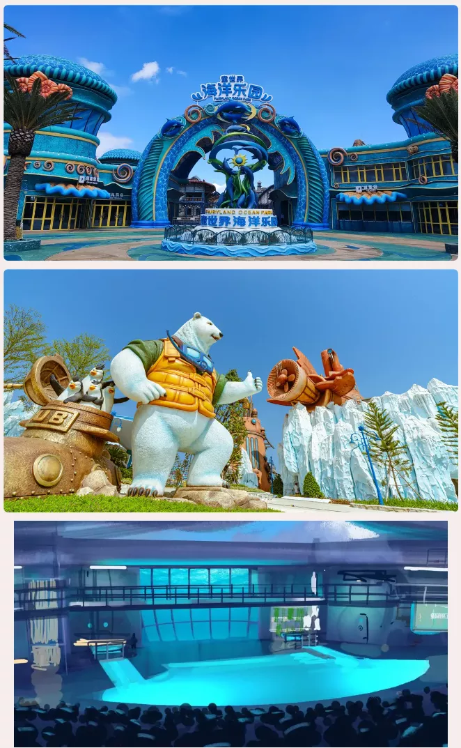 童世界海洋樂園是奇幻互動體驗式大型極地海洋公園,以科 普展示、科普教育為基點,涵蓋極地世界、深海夢幻、熱帶 雨林三大生態圈及發現海港區等四大主題分區,匯聚白鯨、 企鵝、北極熊、海獅、海豚等全球萬千海洋生物,妙趣橫生;