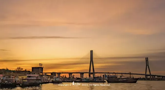 說到去哪看日落洋浦大橋也是個不錯的,選橋上車水馬龍橋下人來人往,時間的船也在這片海岸???。