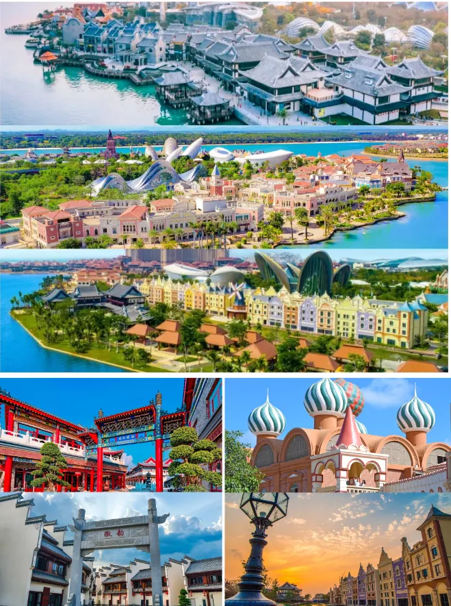 特色街區多國建筑群落:專業導師帶領來到多國元素特色建筑群落,推開藝術的大門,沉浸式體驗10幾個國家及地區不同的建筑環境,介紹各建筑的文化和歷史。